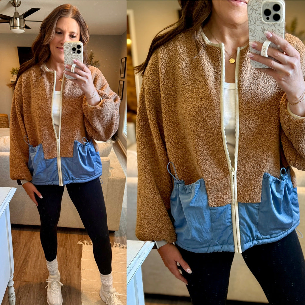 Stay effortlessly stylish and cozy with our Colorblock Teddy Puffer Jacket - a perfect fusion of warmth, texture, and trend-forward design. This reversible jacket offers two distinct looks in one: a plush sherpa fleece exterior for a cozy, laid-back vibe, and a contrasting nylon puffer side for a sporty-chic twist.
